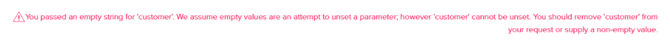 "There was an error with this payment: You passed an empty string for 'customer'. We assume empty values are an attempt to unset a parameter;however 'customer' cannot be unset. You should remove 'customer' from your request or supply a non-empty value."
